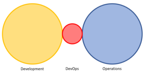 Desde el punto de vista de definición lo más objetiva posible, en la propia Wikipedia lo describe como una práctica de ingeniería del software que trata y que tiene como objetivo unificar el desarrollo de software (Dev) y la operación del software (Ops). Sin embargo, creo que la siguiente ilustración muestra de forma más sencilla la triple colaboración y cooperación precisa: