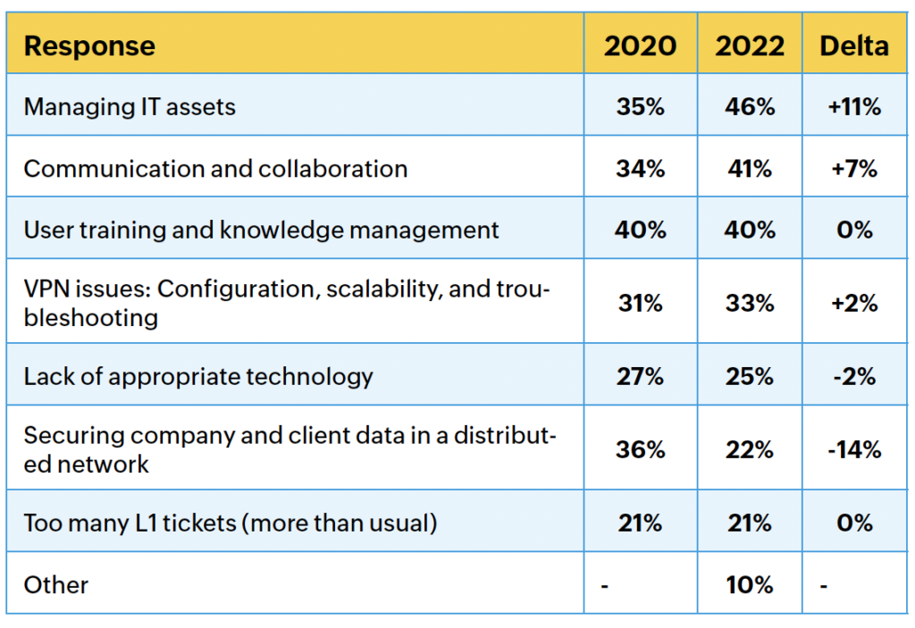 ManageEngine: Informe sobre la Gestión del Servicio TI 2020 vs. 2022
