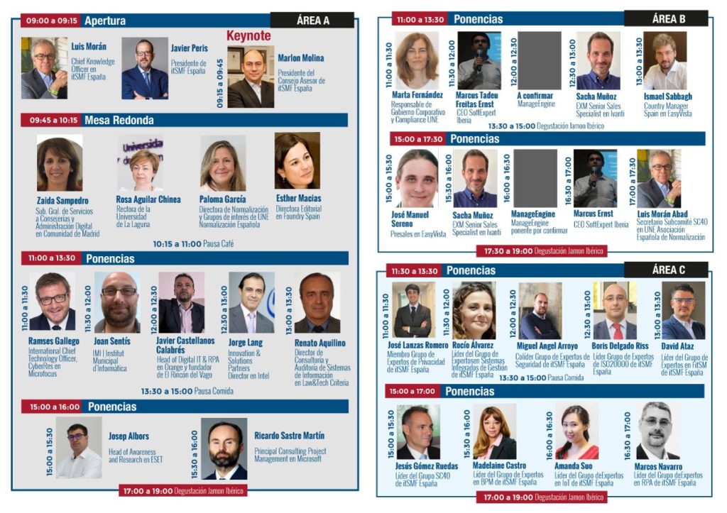 También contaremos con los principales proveedores de soluciones de gobierno y gestión de los servicios, para que conozcas y puedas hablar cara a cara con los fabricantes de soluciones. Tan importante es el conocimiento, como saber qué proveedores te podrán ayudar.